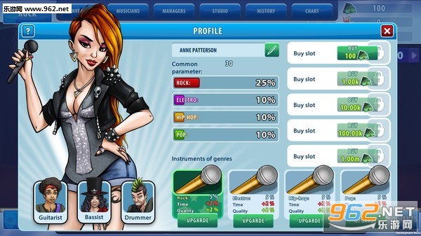 在通往顶峰的道路上获得很多音乐奖项!进入前100名乐队,需要与其他玩家争夺!