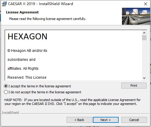 安装路径选择,默认路径为C:Program FilesIntergraph CASCAESAR II ,可点击Change更改,或直接默认。