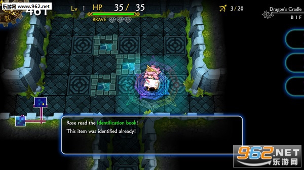 探索自由度比较高,玩家可以在地图中随意选择想到的地点,可以向8个方位进行移动,走到某些道具的格子可以自动获得该道具,但是要注意迷宫通关后道具就会消失,不能留作下次使用。在迷宫中探险有步数限制,可以从画面左上方确认,每走一步步数就会减1,当步数用完就会强制退出迷宫。不过也不需要担心太多,玩家只要在探索中到达新的房间就会回复一定的步数。