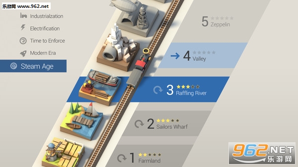 采取了关卡通关的形式让玩家在不同的小镇中建立起铁轨,购买火车并增强。玩家们可参考前作的游戏内容精心评判。我个人感觉还是非常不错的,有着小清新的游戏风格,同时也有令人感到十分舒适的画面效果。