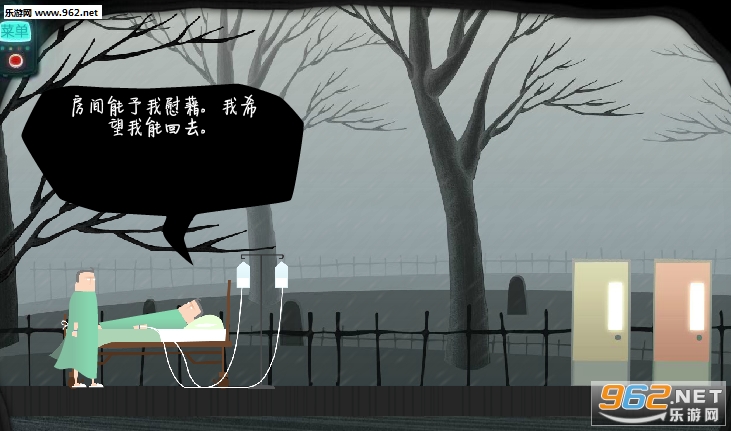 有幸的是,我发现了这款游戏。游戏的背景建立在显得令人心碎的病床上,一个重症患者即将面临着死亡。他唯一能够做的就是转动眼球和思考..简单故事将由此开始,玩家将进入这位病人的梦境之中,完成他心中最后的遗憾..只为见“她”最后一面。