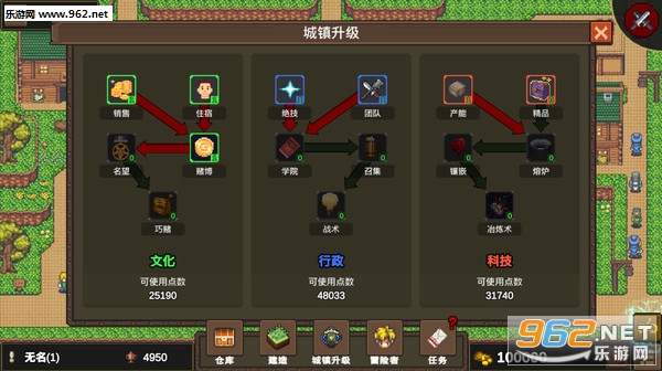 招揽居民扩张城镇,通过城镇升级可以进一步增强小城的产能、提高交易额以及冒险者能力!