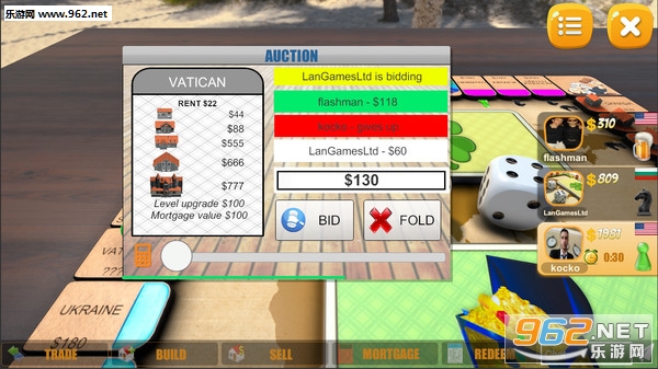 在棋盘里叱咤风云,垄断土地并且让其他玩家破产是胜利的唯一条件。