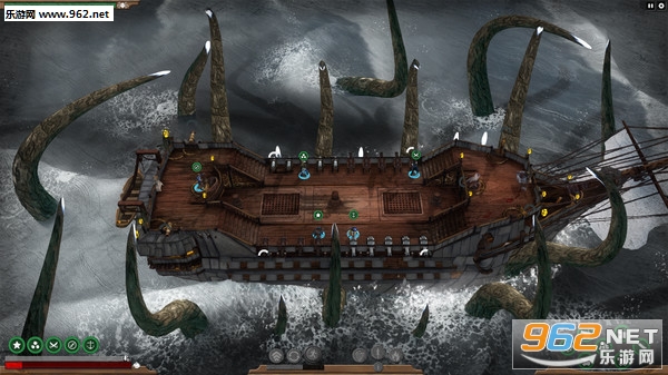 游戏中不仅为我们设置了一些可供指挥的船员,同时还有敌对海盗需要我们使用船上仅有的武器和资源去抵御攻击。除了别的海盗,在这片可以自己探索的海面上还会时不时遭遇难以预料的事情,比如糟糕的天气、被海底的不明生物袭击、突然迷失方向等,这时我们需要运用合理的战术,以便应付这些麻烦事。