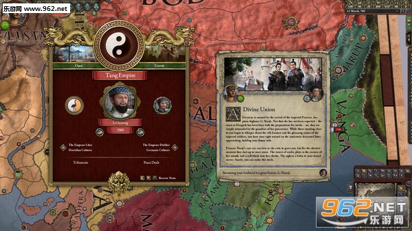 这“中华帝国”也太西方式了耶。嘛先不提不能玩的中原政权,就说汉族可以建立的中华王朝,这...没有一点中华王朝的感觉哈。你说你都称帝了,但下面全是封建式的(中国是封建社会没错但大部分时期并不是“封邦建国”呀),还有封臣的封臣,你说王朝初立大封诸王可以理解,郡国并行嘛,但是朕的郡县!郡县呢!?而且帝国体制本身和白板没什么大的区别(招牌很鲜艳这算不错),大的优点是可以直辖城市,但其他的和伊克塔很像,能收公爵头衔,但那又怎么样呢,国家大了还是要分国王头衔,要回收还是要有总督制,宗教也偏白板(不过似乎能制定继承人?),不能要求转教就要顶着异教惩罚,这...这是哪门子的中华政权呀!锤