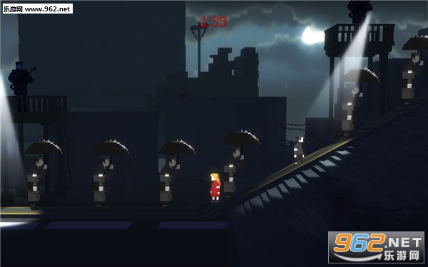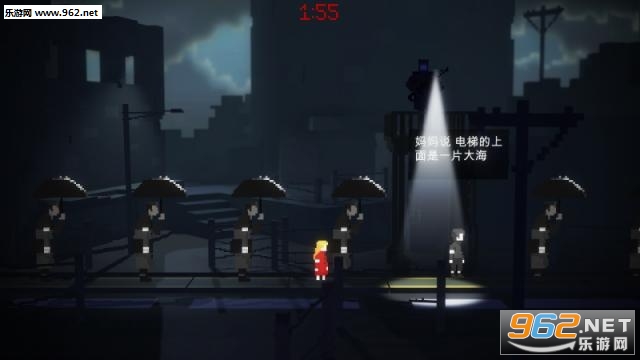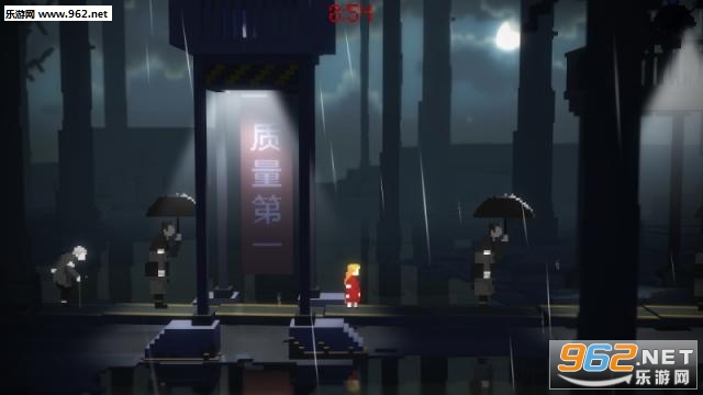 游戏中带有一些小小的微像素风格,让我们能够准确的感受到一些透骨的凉意,玩家们同时需要小心不要被闪电或是闪光灯所照到,更是不要被那些路过的黑衣人所发现...不然枪声一起,恐怕是会吓破胆的~