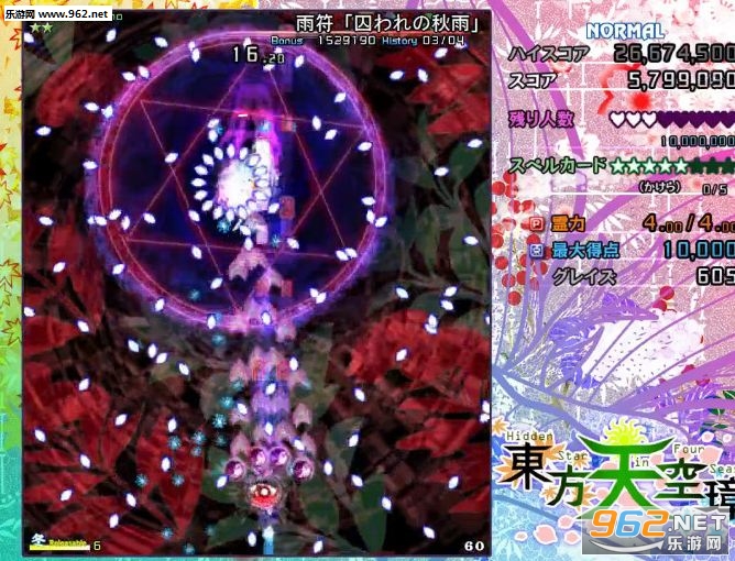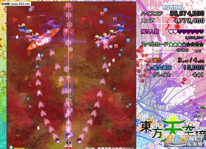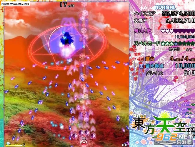 《东方天空璋(Hidden Star in Four Seasons)》是一款由上海爱丽丝幻乐团所制作的纵向卷轴弹幕射击游戏,东方Project系列的第十六个整数作。整个作品由ZUN神打造,采用四名主角,这次有什么幻想乡会有什么新的异变呢?来体验吧。