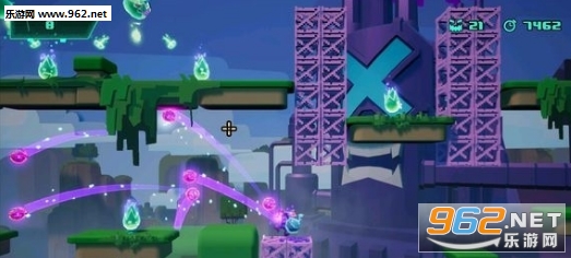 玩家可以投掷炸弹来攻击敌人,也可以利用炸弹的爆炸效果是自己完成二次弹跳