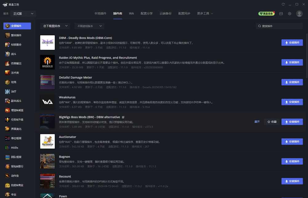 【插件安装】海量插件自由选择安装,同时支持正式服以及怀旧服!