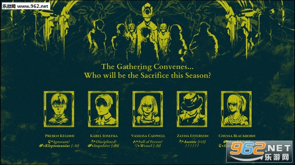 每个家族都拥有6位成员,每季度必须任命其中的一位为顾问,负责该季度的事宜。人物均拥有一项美德和一项罪业,美德可在执行工作时提升其它数值,罪业则要扣减。开局时会随机揭示一些人物的特性,而对其进行调查,可以明确美德和罪业的具体数值,藉此来提高工作效率,并将犯下大罪的人在季末进行献祭。