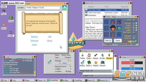国王之路(Kingsway)是一个不同寻常的rpg游戏,你会进入一个虚拟的电脑操作系统,通过这个系统,你可以管理你的冒险生涯。游戏的每一个元素都是操作系统的一部分,敌人和陷阱是弹出窗口,背包是文件的文件夹,你的项目和任务是电子邮件。每一次进入游戏的时候世界都是随机生成的,并且死亡是永恒的哦!可千万不要大意。