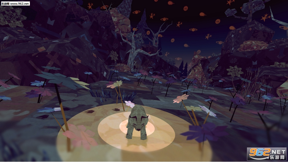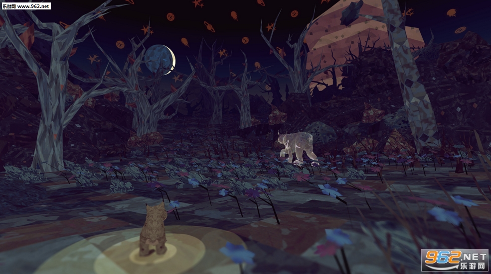 《蹄印》有着独特画面风格,缤纷多彩又层次清晰的色块、特意为之的多面体建模构成,黑白分明的光影层次处理……树木山川为任意涂抹的笔触,花草星辰是飞溅的彩色墨点。而流畅自然的人(动)物动作,与极具艺术感的画面相结合,让人在简单的操作中,也能沉醉于这个充满野性的自然世界。
