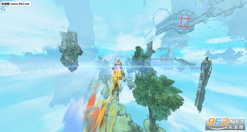 通过漂浮在浩瀚的深渊上方的广阔世界,使用您的火箭发动的外部套件来探索隐藏的路径并收集电力来提升您的表现