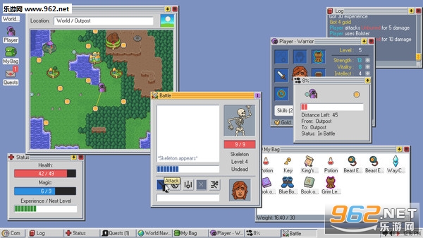 王道(Kingsway)是一款非常独特而且创意十足的冒险类rpg作战游戏,游戏中的玩法跟传统的rpg游戏相差不大,但是其表现形式却极为特别。例如游戏的界面是一个虚拟的电脑桌面,而游戏则通过一个个的窗口向玩家们展示,例如主游戏世界、背包、战斗界面、战斗信息、材料收集等等,这些都会以一个单独的窗口表现出来。你还可以利用电子邮件来接收任务,非常新奇的一个设定。