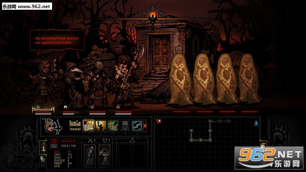 Red Hook不曾为《暗黑地牢》做过正式的“关卡设计”,他们只是设计了很多敌人的组合与技能,以及各种物件(Curio)互动的方式,然后将其随机或固定放置在千篇一律的走廊与房间中而已,这是遵循Roguelike基本公式的必然结果,相对于游戏原本的规模而言也不足以构成问题,但是倘若将这些引以为傲,还夸耀般地膨胀至“史诗”程度,就太离谱了。