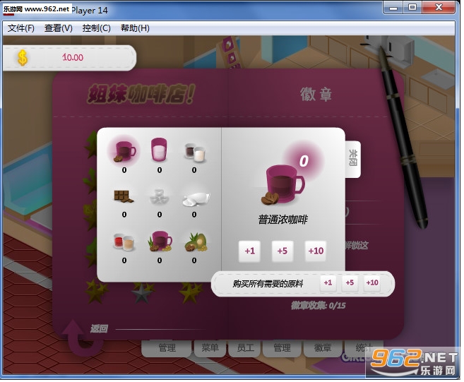 《姐妹咖啡店(kopibreak)》是由deadphektor@devlantART制作的一款模拟经营类游戏,游戏中玩家要帮助这一对姐妹花经营一家咖啡店,从原材料选购、菜单、员工、管理、徽章等都要自己完成。如何盈利就得靠玩家们自己的本事了,看看我们的玩家有没有那个能力得到姐妹花的欢心呢?