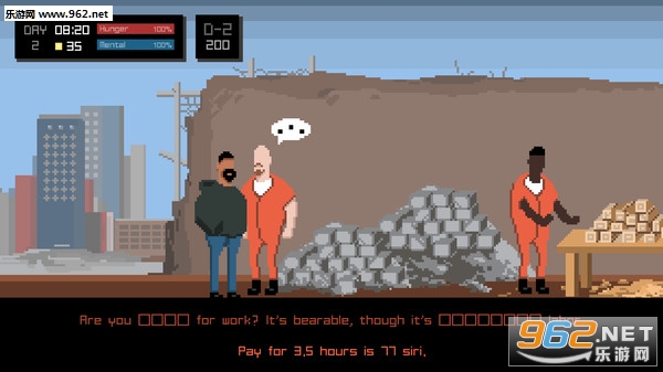 游戏中的基本流程是基于对话展开的,玩家需要与周边的人交谈,难民或者来此寻觅工人的资本家,甚至还有身份成谜的不明人物,总之,他们都会给你工作,你必须不断的工作才能保证自己的存活,并给还在路上的妻儿寄去救命钱。