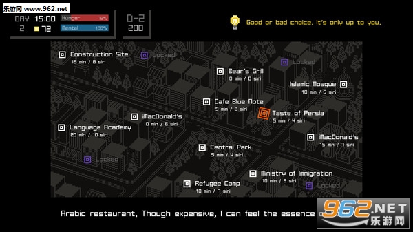 所谓的“工作”自然不会那么简单,这也是游戏展现思想的主要部分,有些工作幸苦却待遇微薄,有些简单却危险,在急需用钱的时候,玩家会做出怎样的道德选择?是成为一个遵纪守法透支生命的好外来客,还是成为新闻中的难民暴徒?一切都源自玩家的选择。