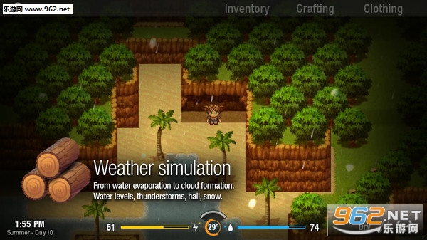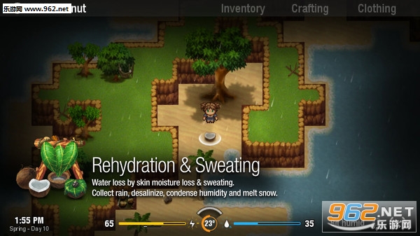 《层层揭秘》可以说是一款用类似于RPGMARKER做的模拟生存类沙盒式游戏,玩家们将在游戏中以一个2D的画面方式存活下去,我们在游戏中最为重要的两项项数值就是体力和口渴程度了,体力则需要吃果子或者其他物品来提高数值,口渴就不用说了吧..如何灵活运用体力是这款游戏的关键。