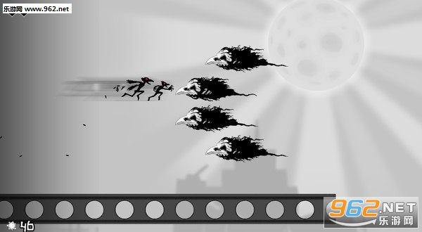 与《神庙逃亡》一样后面总是跟着一个怪兽,乌鸦人在跑的过程中后面会有一片黑暗席卷而来,玩家不能慢下脚步,否则被黑暗笼罩则游戏结束。