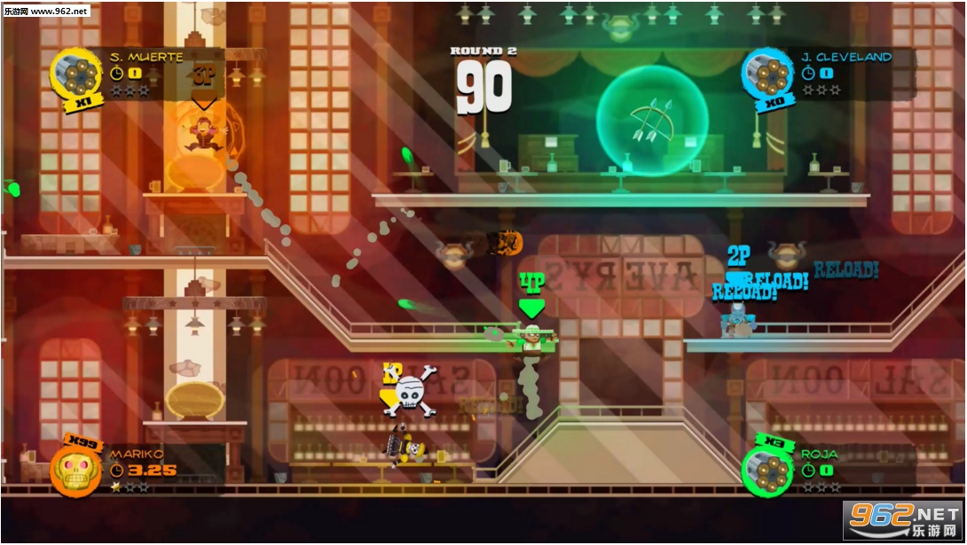 《草帽:西部混乱》是一部多人混战的动作射击游戏,游戏人物以意大利风格特色较为吸引人眼球,紧张快节奏的游戏配上动感的BGM让几个小伙伴们之间的混战倒是打的不亦乐乎,游戏中共有二十余个各有特色的人物,我们将使用它们独特的弹道对对手产生致命的打击!