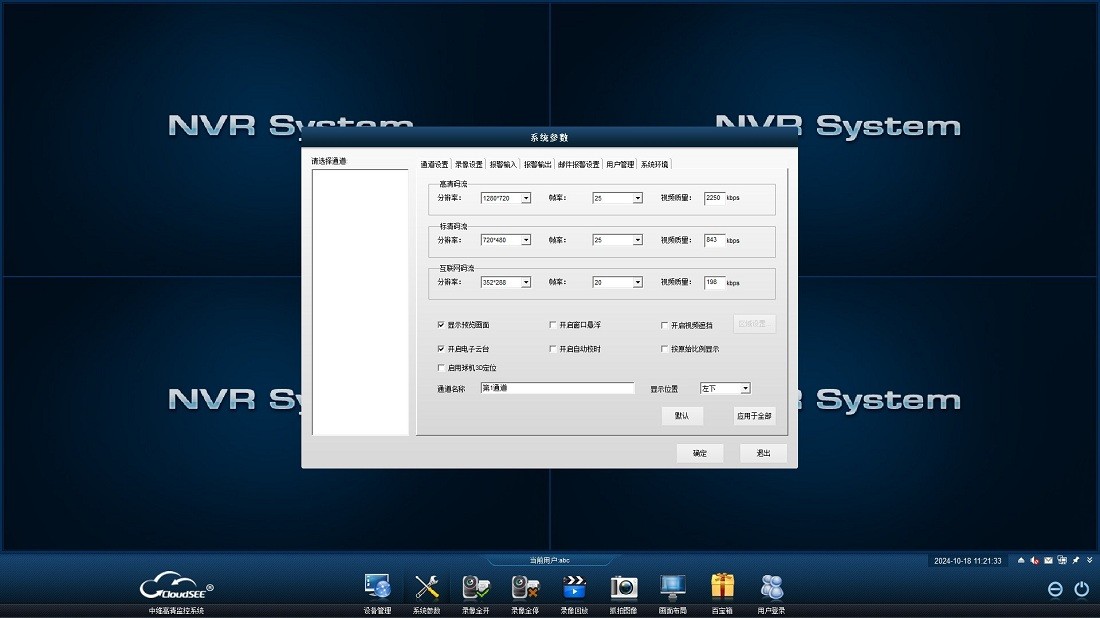 4.通道录像:常规录像、定时录像、报警录像、标准mp4录像格式