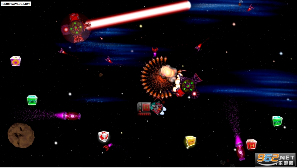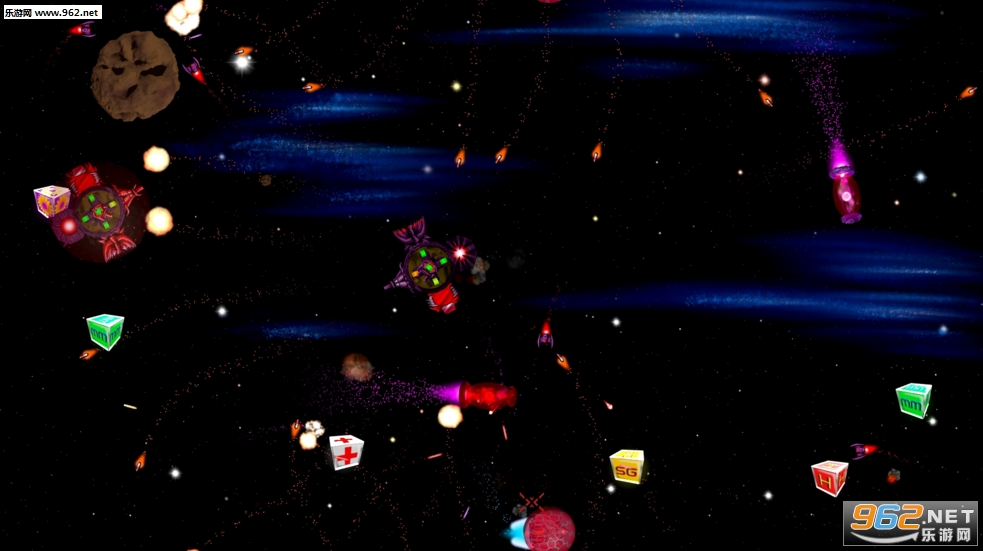 邪恶的聪明敌人,包括战斗机、ufo、装甲空间站,还有小行星!