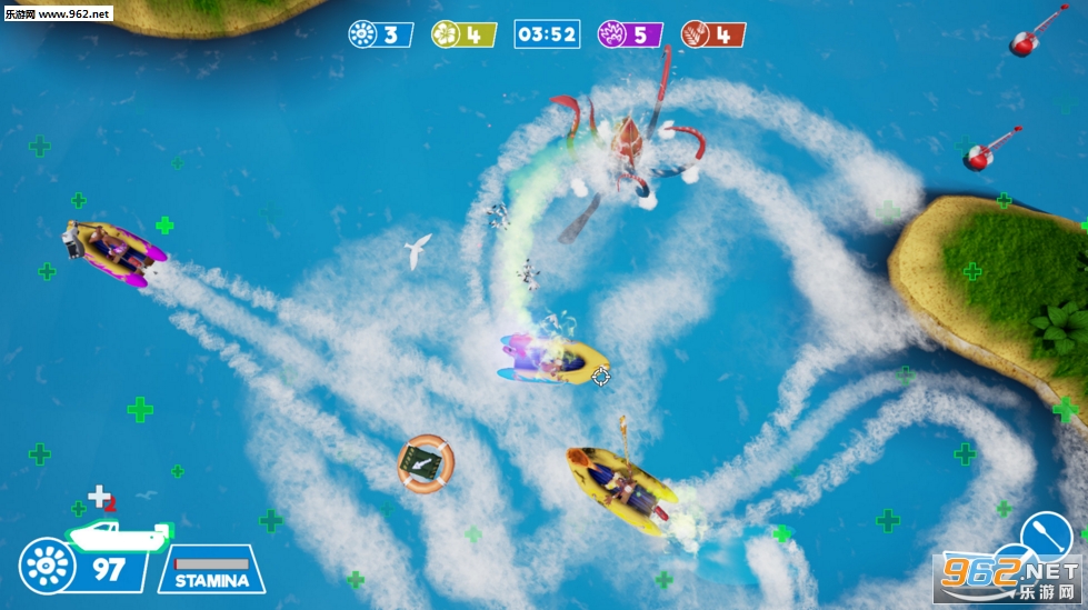 这是一款非常有意思的第三人称动作冒险类游戏,与以往不同的是,我们这次扮演一只狐猴在海上乘坐着皮划艇钓鱼!而你的对手也在想尽方法钓鱼,这个时候我们可不能光凭钓鱼技术来比拼了,想办法坑他们!撞击他们,使他们触发鱼类,或者把他们弄到海上的掠食性动物嘴里,增加我们钓鱼的时间!