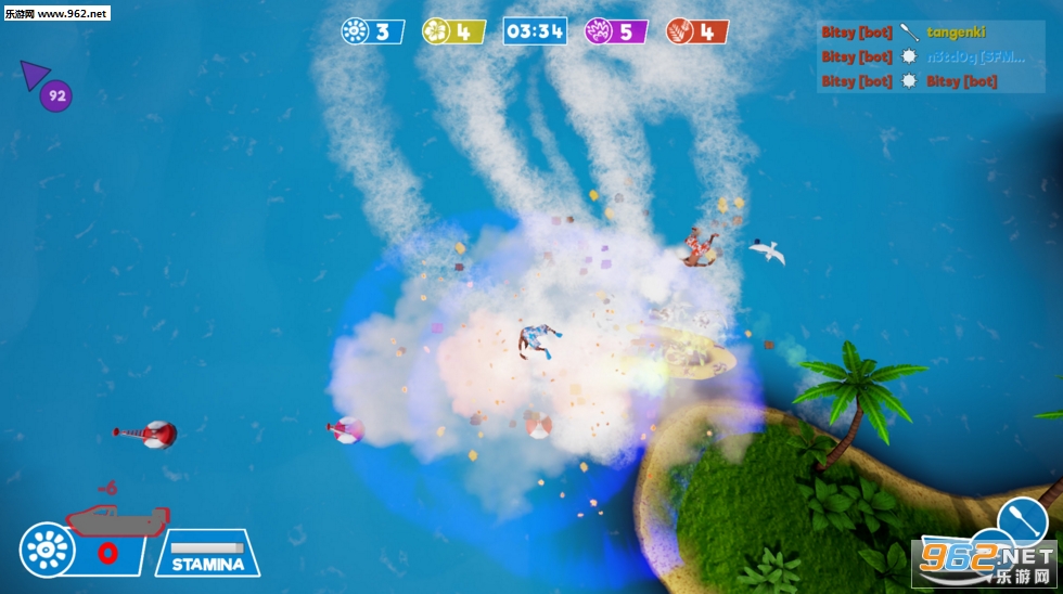 这是一款画面感极强的游戏,画风有点类似于曾经的PS2游戏~海上的蓝色风景以及精致的沙滩也让我们感到十分的舒服,游戏主要采取的是卡通的风格画面,并且小编认为这款游戏的创意十足,是一个内容非常丰富的竞争对抗游戏~