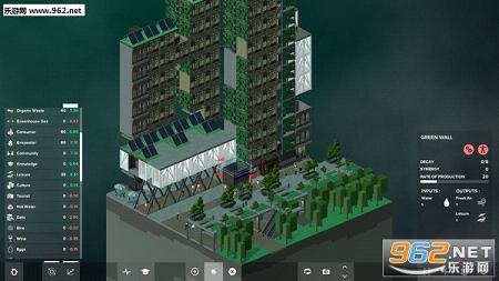 在游戏中,玩家将利用不同的方块建造一个蔓延的垂直社区。每个方块都有输入与输出,只要将他们连在一起,你就能创造一个有生产力的繁荣社区。例如树需要水来制造氧气,商店需要顾客赚钱,如此这般。你需要建造学校与工厂,收集资源、生产能源、处理废料,并应对四季变换。