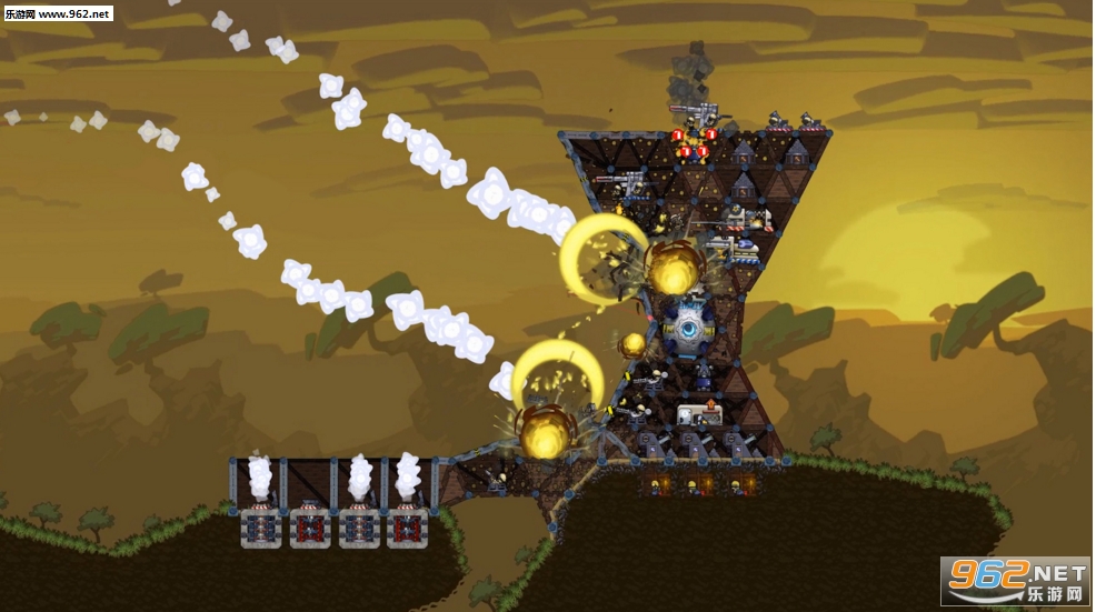 玩家在游戏中必须要收集我方堡垒的所需的建筑材料、布局我们的攻击性武器所在、加固我们堡垒的防御系统。玩家可以建造不同形态、大小的堡垒,只要你觉得这个状态有利于你的进攻或者防守,当然,这个状态最后是好是坏需要留给玩家对抗之后自己评判改进了~游戏中会有科技树系统,当我们的材料以及科技达到一定的程度后可以解锁更强的防御系统和攻击系统~