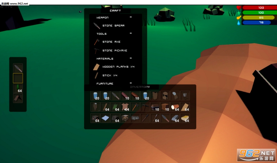 游戏采用的方块式图形效果,在与野兽之间战斗的时候也不至于血腥,我们大致能够知道每一样材料代表的都是些什么,并用这些材料制造出我们生活所需要的东西才是最要紧的事情,游戏中的每一项指标代表着角色的健康值,希望玩家们能够帮助戴夫活下去,离开这里找到回家的路!《生存计划》。