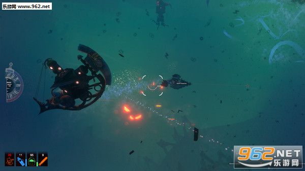 《Diluvion》是一款海底探索类游戏,在游戏中,玩家扮演潜艇船长,根据船长的指示在深海中四处探索,同时招募队员、收集资源。在一开始,玩家将要选择一艘合适的潜艇进行游戏,Glaciem VI、Iron Minnow和Mariana,三艘船在速度、库存、战斗力上各有优势,但同时,在一方面获得优势将意味着在另一方面有所短缺。比如说,Mariana战斗力惊人,但在三艘船中移动速度最慢。