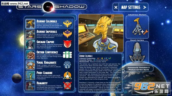 《Stars in Shadow(暗影之星)》汉化版是Ashdar Games制作,Iceberg Interactive发行的一款4X回合制战略独立游戏,科幻的史诗太空背景非常吸引人,与外星人派系竞争的探索,建造舰队防御竞争对手,你可以选择战争或是谈判!