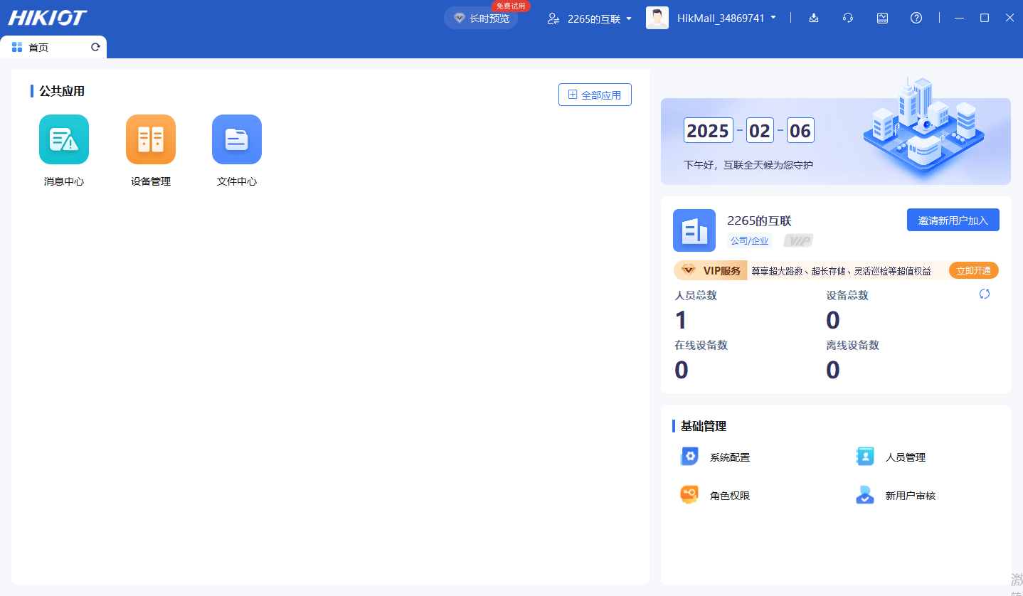 海康互联电脑版可以与海康互联app以及海康互联网页版保持同步。还设计了账号管理和权限分配功能。用户可以根据自身实际管理需求,灵活分配不同角色的操作权限,保障了系统的安全性和可靠性。它通过强大的网络通信技术,支持用户连接公网,对那些已经接入海康互联上云的设备进行远程操作和配置管理。如视频设备,支持用户远程查看视频监控画面、可视对讲设备,视频预览语音对讲更安全、网络管理设备、智慧消防设备、门禁设备等。同时,海康互联还提供全流程、一站式的无忧增值服务,如电话提醒、云存储、云备份、电话提醒等,满足不同用户的各种需求。