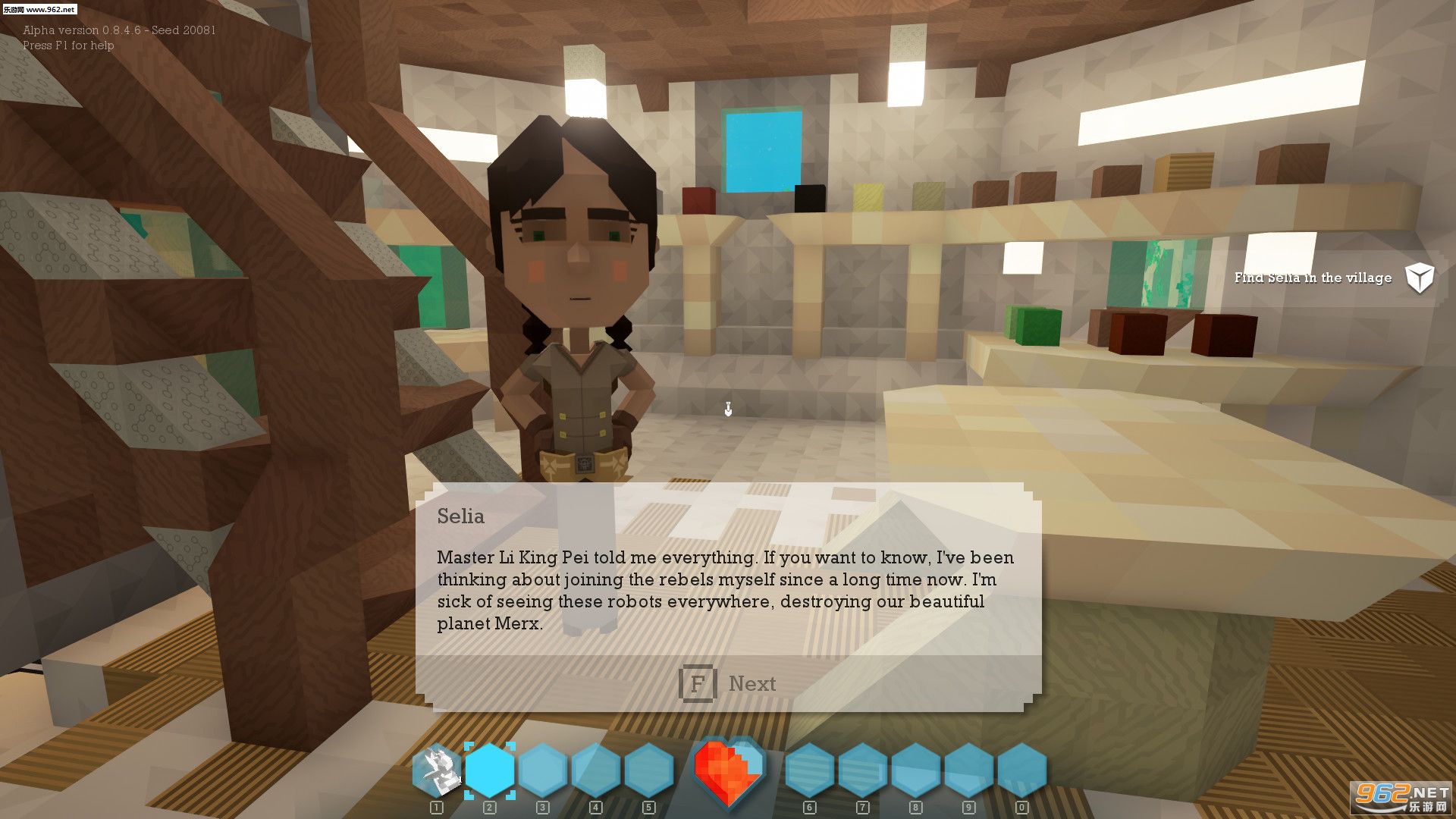 Merx是游戏中的第一个星球,也是最小的一个,每一列有1200个方块,每一面有140万个方块。总面积是540,000m2,大约一共有20亿个方块。