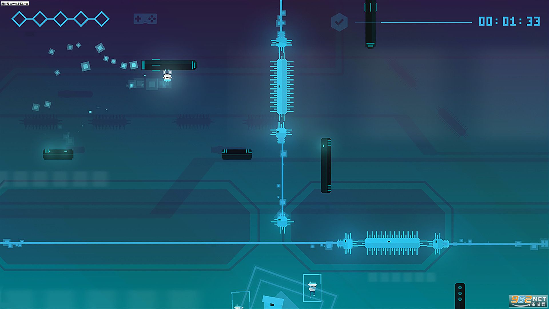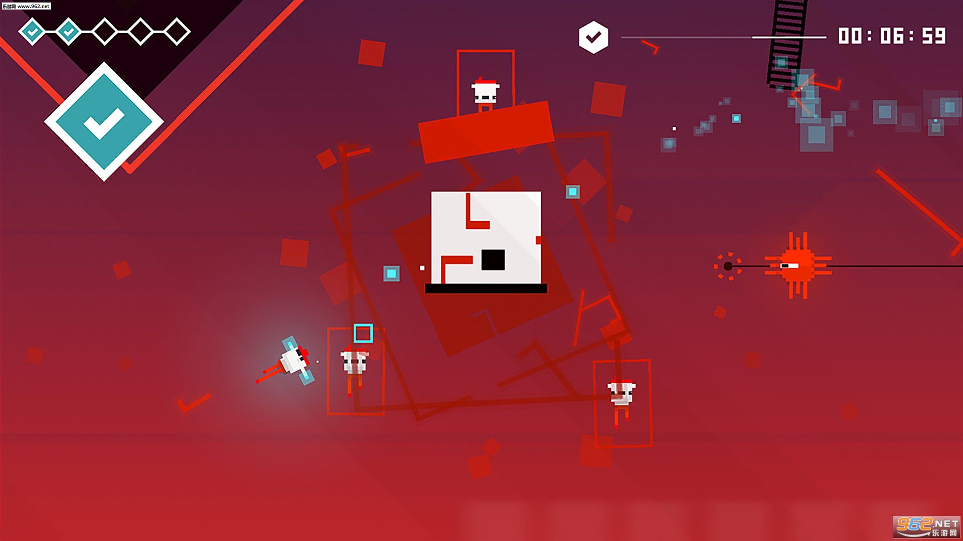 每个阶段的任务只有一个,那就是让幸存的那一只 HoPiKo 解救其他被囚禁起来的 HoPiKo,一路上各种平台和挡板就是 HoPiKo 的移动中继,不过这些平台都有一个自爆设定,并且我们可以看到屏幕的右上方有一个计时条,在短短数秒的时间内解救同伴才可以获得满分评价,这些设定都充分给予了玩家不断挑战新纪录的动力。