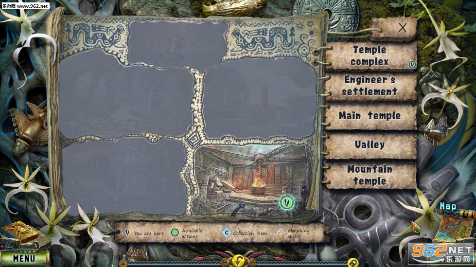 休闲模式:互动区域,物品和可放大区域有闪光提示。提示和跳过按钮快速缓冲。找物游戏没有惩罚。可互动区域在地图上有标识。