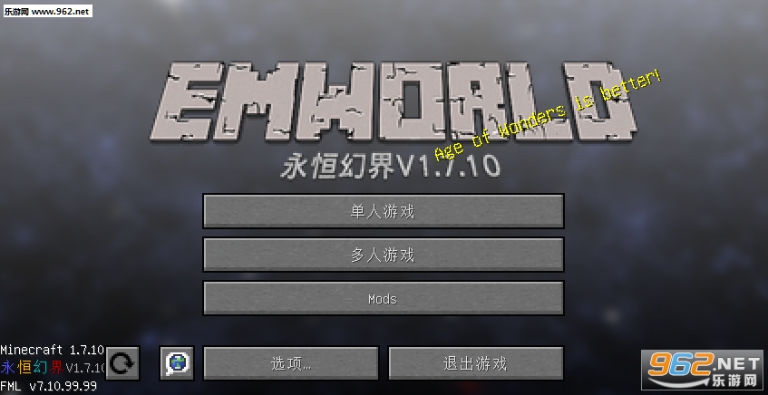 《我的世界1.7.10永恒幻界整合包》是国内玩家耗时三个月制作的一个超大型冒险整合包。游戏整合了108个MOD,在游戏中显示139个MOD,其中包含终极独角兽、更多地牢、刺客信条、大魔法师、高级光剑等等,另外还有很多恐怖元素,心理承受能力差的玩家请谨慎下载!