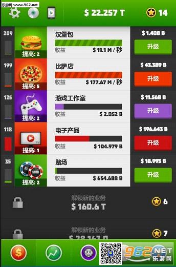 《商业模拟器》是一款点击放置类经营游戏,不管是玩法还是创意都十分类似steam上某款相同题材的火爆挂机游戏,玩家从卖汉堡开始,渐渐地发展自身的商业实力,雇佣经理卖东西,放置挂机增加金钱,建立自己庞大的商业帝国。