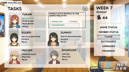 从目前看有五名可支配角色,分别对某些领域的属性数值有所长短,模拟做出一部漫画的全过程,作为老板的你还要想着如何盈利,如何让工作室维持下去,并且尽可能的泡到心仪的妹子,听起来是不是很带感?