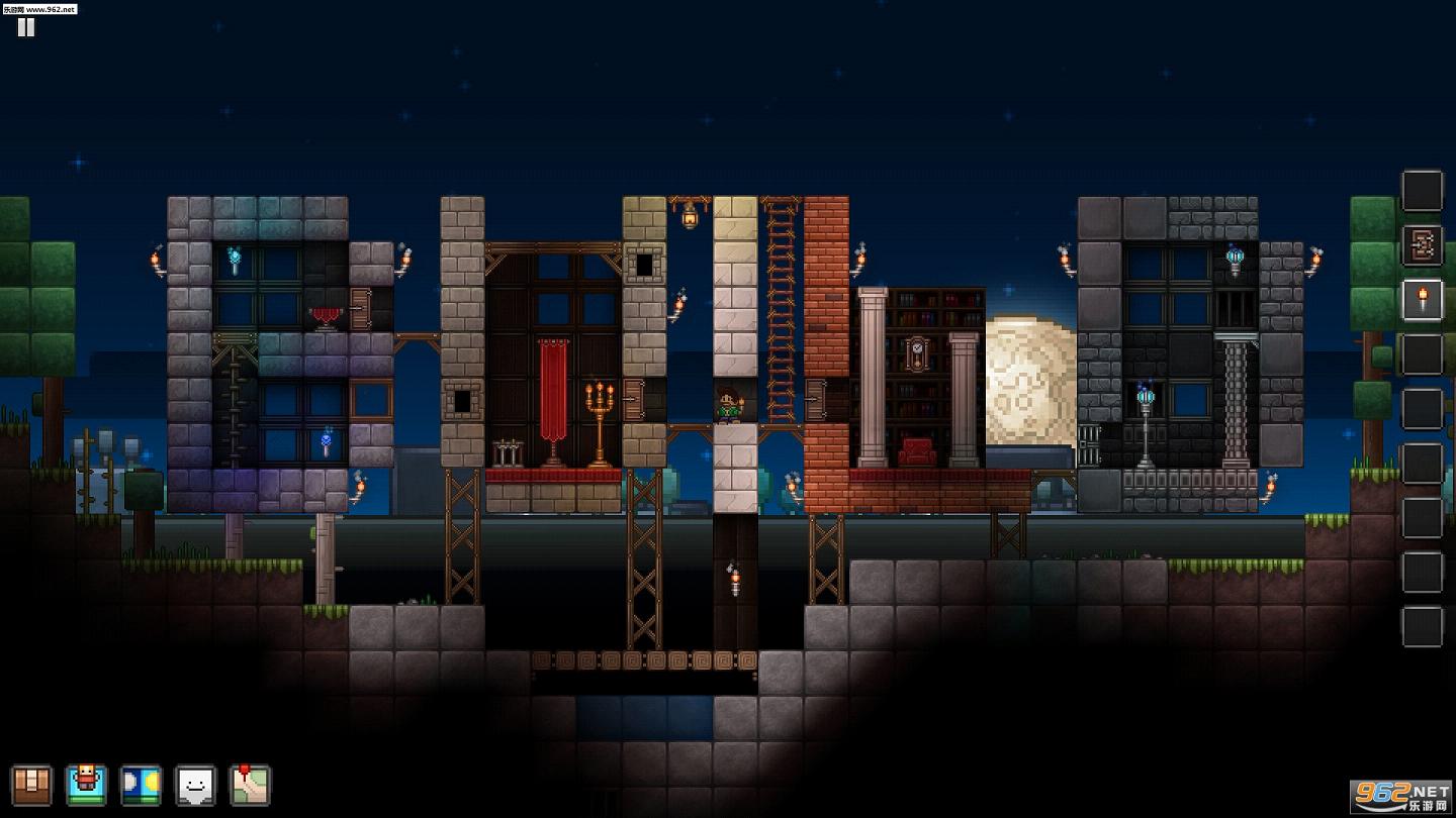 画面上面《拾荒杰克》也是属于像素风格的大块大块的马赛克组成的,虽然没有《泰拉瑞亚》那么更加彻底的贯彻像素风格,但是《拾荒杰克》的自由度和画面感觉要好得多。对于那些边缘玩家和对平衡爱好者来说这款游戏更加容易接受。