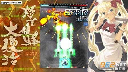 《怒首领蜂大复活》是CAVE在2008年出品的一款弹幕STG。该作品是CAVE STG"首领蜂"系列的第4作,也是《怒首领蜂大往生》的续作。故事背景为大往生中Expert强化人偶的结局之后发生的一系列事情。本作在2008年5月首发在街机平台,同年6月推出1.5版本,之后相继推出了黑版以及在XBOX360家用机平台和智能手机平台推出移植和改编版本。相对于《怒首领蜂大往生》,本作增加了一系列设定:标明自机判定点、Hyper散枪消弹、自动雷机能等等。深受STG玩家喜爱。