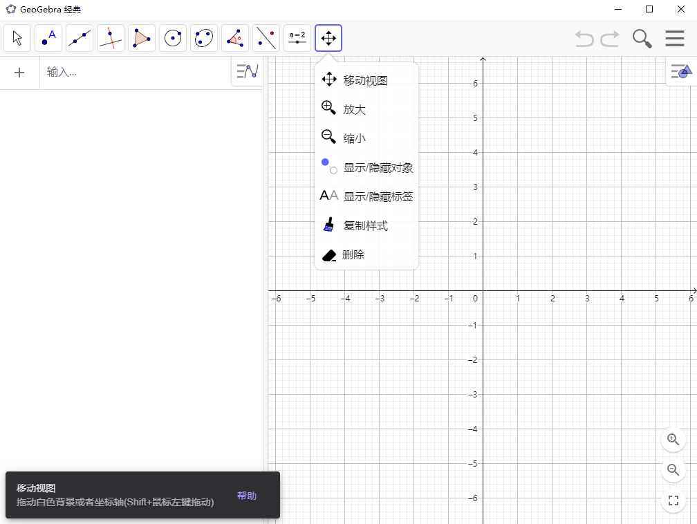点击选择几何,我们就进入了平面几何界面,在这里我们将顺便聊一聊GeoGebra的绘图原理。