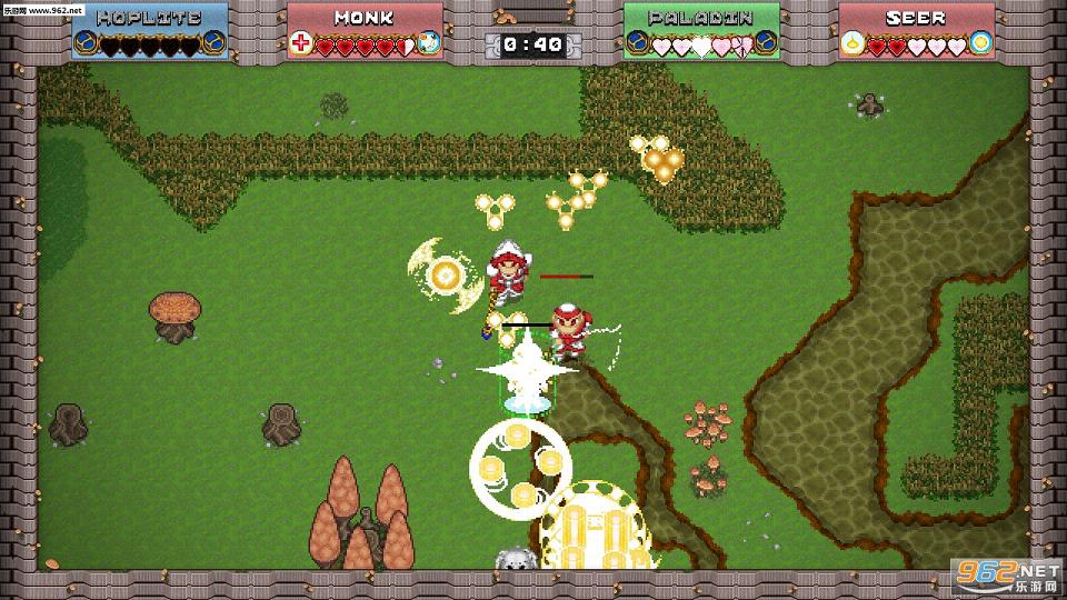 《全职大乱斗2》是一款像素风格的乱斗小游戏,玩法上采用即时制战斗模式,玩家可以选择一名角色与最多三名AI组成4人大乱斗模式,努力消灭他们取得比赛胜利。每一个角色都有其独特能力,比如战士的多段斩击,法师的火球术、弓箭手的超远距离射程等等,非常有意思。正所谓“与人斗其乐无穷”,本作还支持多人在线联机乱斗模式,玩家可以与自己的小伙伴或者素未谋面的陌生人来互相伤害,斗智斗勇,体验游戏乐趣。