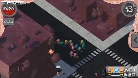 在游戏中玩家将控制一只章鱼,前往满是人类的小镇,在这里,你将他们全部变为自己的同类,随着游戏的进行,你的队伍也会越来越壮大,当然,人类的防御措施也会更猛烈,如何以最小的代价获得最大的胜利就看玩家们的策略意识了。