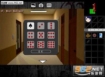 2、左转两次回到初始画面会发现墙上的人脸机关,将眼球放入其中会得到一把【红桃钥匙】。