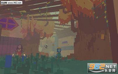 Sundae Month 在推特上贴出的动图很好地说明了这一点。那个星球城市的环境、建筑和市民,在短暂十几秒 GIF 里得到了生动展示。你可以看到晨昏轮回、阴晴变幻,看到小巷、后街、广场、桥梁和店铺,看到形形色色、奇奇怪怪的市民行走往返。游戏用立体像素的 3D 风格,构造了一个无缝连接的城市,将酒吧、银行、商店等各式建筑和长耳朵的兔子,漂亮的蝴蝶夫人、电视头机器人等各色市民,一一填充进去,加上天气光影,让一切在这个世界里运作开来,人们来来往往,走走停停,闹市街头永远熙熙攘攘、人头攒动,更别提在为期九天的一周的最后一天,所有人都会上街集会、玩乐、唱歌。间或巨大的飞艇在空中划过,留下一条炫目的光带。城市在自然流动变化,生活显得琐碎而真实。