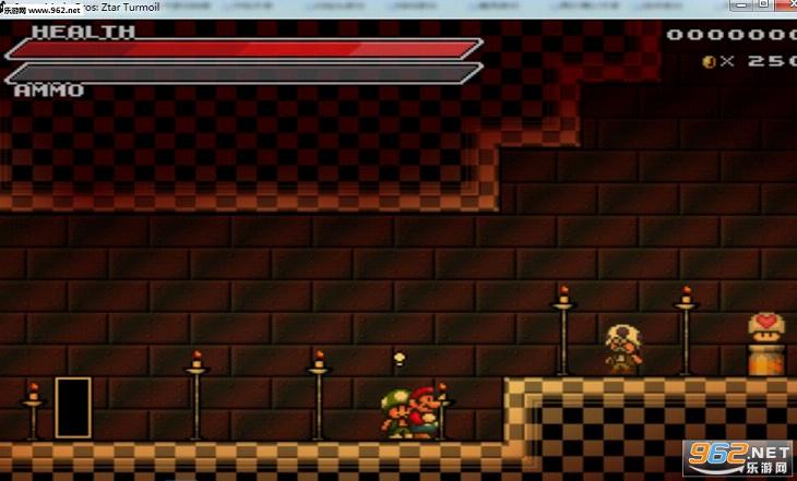 一款马里奥同人游戏,似乎很新颖,马里奥手拿机枪、加特林,竟然连怪都拿着武器,更可怕的是马里奥有了血条。