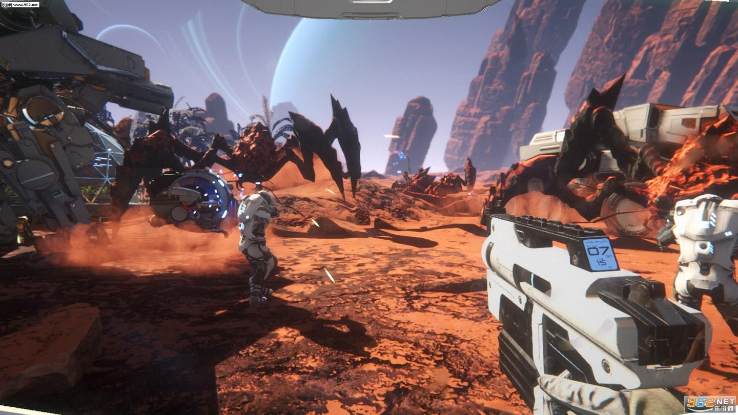 在线和其他玩家合作,建立发展殖民地,共同对抗外星物种的威胁,在艰难的外星环境中生存下来(包括流星雨),此外还要防守其他在线玩家殖民地的攻击。